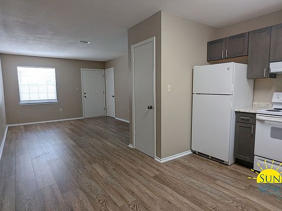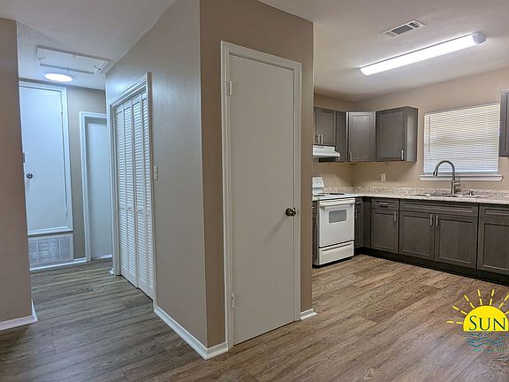 This charming 2-bedroom, 1-bath end unit is conveniently located near local schools and Highway 98, offering easy access to shopping, dining, and more. Inside, the home features durable vinyl flooring throughout, along with a newly renovated kitchen and bathroom. The spacious living room flows seamlessly into an open, eat-in kitchen, creating a welcoming space for everyday living. Down the hall, you'll find two generously sized bedrooms and a modern, updated bathroom. Outside, a small covered front porch provides the perfect spot to relax and unwind. Lawn care is included for your convenience. Please note: this unit does not have washer/dryer hookups. No smoking and no pets are permitted.