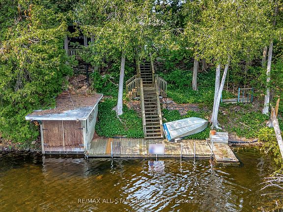 Welcome to this charming two story home nestled along a peaceful canal, with direct access to beautiful Sturgeon Lake. Located in the community of Fenelon Falls, this year-round property offers the perfect blend of comfort, charm and waterfront lifestyle. The main floor offers a functional galley kitchen, a spacious dining room, and a cozy living room both with walkouts to a 4-season screened-in porch. A third bedroom and a full 4-piece bathroom add versatility for family or guests. Main floor laundry which provides access to the crawl space. A bonus games room with a separate side entrance offers flexible space for entertainment, hobbies, or endless potential possibilities. The second level features two generous bedrooms, each with private balconies. The primary bedroom enjoys serene water views from its balcony, ideal for morning coffee or evening relaxation. A 3 piece bathroom serves the upper level. The exterior features a partially fenced, landscaped yard with a garden shed and stairway leading down to the waterfront. A shed with an attached carport is situated along the driveway, offering additional storage and covered parking. Enjoy direct lake access from your private dock, plus the added convenience of a single dry boathouse. This property is a wonderful opportunity to enjoy peaceful waterfront living with all the amenities of Fenelon Falls just minutes away.