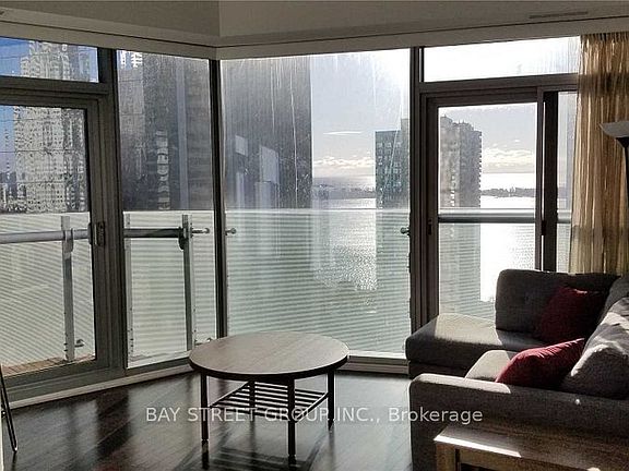 Partially Furnished (Can Be Moved If The Tenant Doesn't Need it) lovely 2 Bedrooms 2 Bathroomsouth east View781 sq. ft. unit in the heart of downtown! Hardwood flooring In Living &Kitchen, Modern kitchen,Split Bedroom layout, Sun-Filled SE Corner Unit With Amazing Lake &City View, 9' Smooth Ceiling,Floor To Ceiling Windows. Exceptional facilities include: Indoorpool/jacuzzi, sauna, gym, with 24hr security. Lively, vibrant and convenient location with PATHaccess to Union Station, FinancialDistrict, steps to the Waterfront, CN Tower, groceries,retail and within steps to tons of eateriesand cafes! One Parking P3/57 Is Included