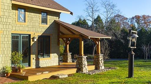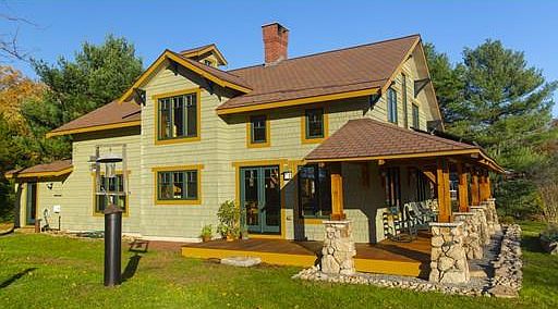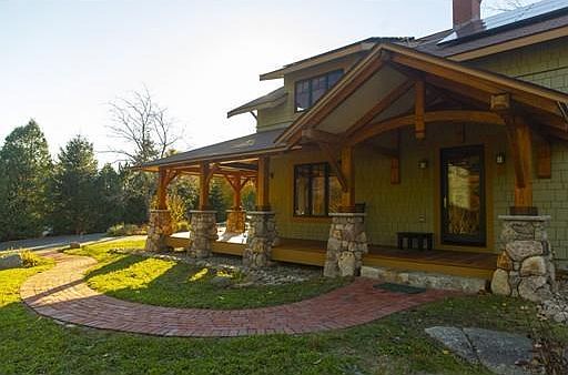 Stunning and remarkable home custom built in 2007 with the utmost care and attention to detail. It's impossible to describe the beauty of this property. Set on a south sloping almost half acre lot with rights to Goose Cove, the building is a state of the art timber frame construction with most of the red oak frame grown in Massachusetts. The wrap around porch is made of white oak, a species prized for weather resistance. And the stones used to build the porch columns are all from the site. Designed for passive solar heat gain on the south end in the winter, it also provides cooling shade from the porch in the summer. The studio on the first floor could easily be used as master bedroom. Soaring and dramatic cathedral ceilings allow for natural light to pour in throughout and the solar panels are providing more power than what the house needs Beautifully designed perennial gardens and mature trees and shrubbery provide a welcoming and attractive entry. This is a very special property