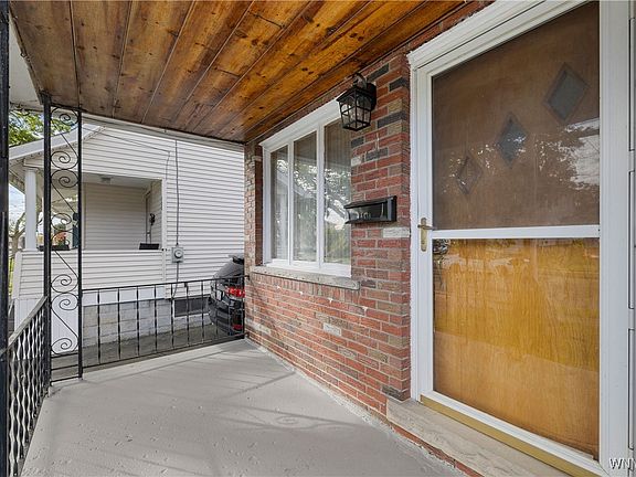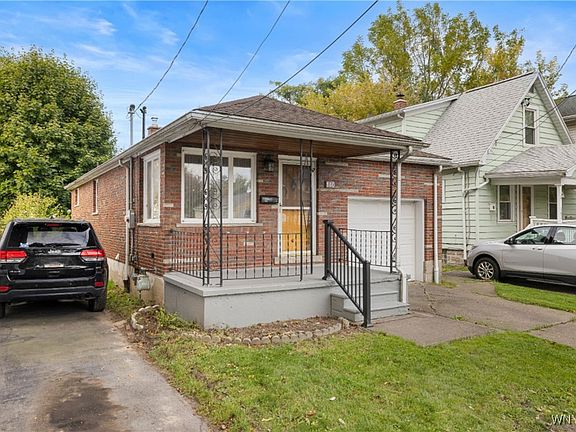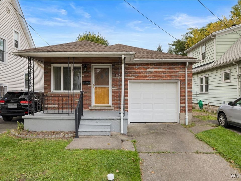 Welcome home to this delightful two-bedroom brick ranch with an attached garage, perfectly situated in the heart of Niagara Falls. Kick back and relax on the spacious covered front porch. Step into a cozy and inviting living room, leading into an eat-in kitchen—ideal for everyday living. Both bedrooms offer nicely sized closets, while the fully remodeled bathroom adds a modern, stylish touch to this home. The entire first floor has been freshly painted. Spacious full basement with plenty of room for storage, utilities are housed here, and a convenient laundry area. The attached garage features a side entry door that leads to the backyard. Roof is approx. 2 years old!
