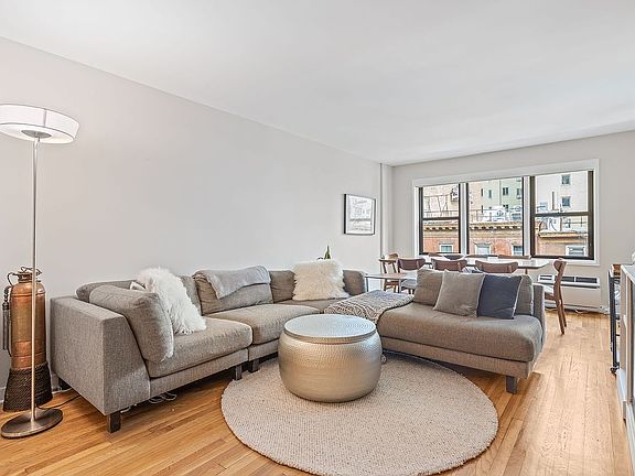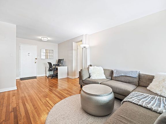 Apartment 5E has recently been renovated into a convertible two-bedroom apartment with modern updates like quartz countertops, new stainless steel appliances, custom windows and blinds, and a remodeled bathroom with glass shower doors. The master bedroom is spacious enough to comfortably accommodate a king-sized bed, two-night tables, and a desk while also featuring two closets; one is a deep built-in, allowing for ample storage. The queen-sized second bedroom has a sliding door to optimize space and is versatile enough to be transformed into a home office, kid'sroom, nursery room, guest room, or home gym. The apartment has four oversized closets and open northern views that allow plenty of natural light in through 6 large windows.