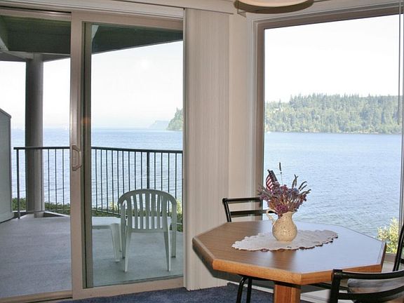 Waterfront and 120 degree views of the the shipping lanes, Port Ludlow Bay and the Cascade mountains are yours at this updated, well-maintained condo! Includes two separate ensuites, one or both can be used as short-term rentals or as your private residence or getaway. Newer kitchen including appliances, cabinets, counter tops and lighting. Large living area with private covered patio overlooking the water's edge. Membership to the Beach Club with community pool, tennis, clubhouse included.