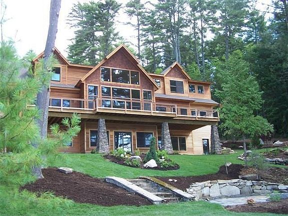 Moultonboro, NH. New Adirondak style Lake Home built on spectacular estate size lot on Winnipesaukee. 8000 sf filled w/unbelievable interior/exterior quality. 288' of gorgeous white sand beach w/separate docking area. Designed by Scott C Fuller Development! Includes stone FPs, gourmet kitchen & specatcular sunsets! Close to center Harbor shops.