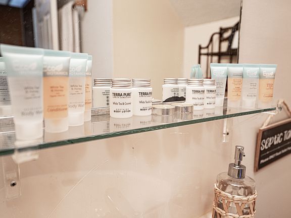 The clean & contemporary full bathroom has all major amenities, such as fresh high thread count towels, toiletries, hair dryer, standing shower, shampoo, showering gel, etc.