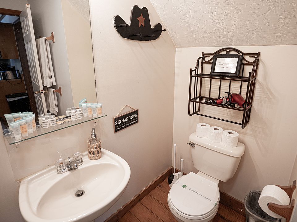 A comfy and inviting living area equipped with all the basic amenities that you will need for a comfortable stay at this cabin surrounded with nature & peace.