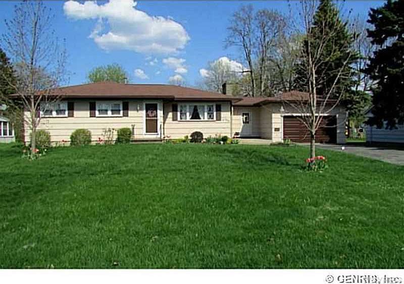 Move right in to this lovely Ranch with a surprising amount of living space. Family room fireplace with wood burning insert. Large finished basement with full bath, additional fireplace and wall mounted gas heater. French doors in master bedroom open to large (720 sq. ft.) wood deck with pergola. Large shed and above ground pool (30') with fenced backyard. New garage door in addition to rear garage door allows vehicle access to backyard. Original oak hardwood floors. Located off the 390 with a convenient 10-15 minute drive to anywhere in Rochester. Close to shopping. Star exemption $788