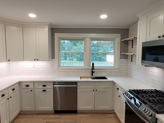 No need to look any further. Completely remodeled home in a wonderful park like neighborhood. Brand new kitchen with beautiful new higher end stainless steel appliances (fridge, stove, micro, and dishwasher), under cabinet lighting, subway tile backsplash, floating shelves, undermount sink, and garbage disposal. High end quartz countertops sit on top of white shaker cabinets with soft close drawers and doors. There are new 1x4 solid oak floors throughout the 1st floor along with new carpet in the bedrooms. The main bath has double sinks with new light fixtures, faucets, and toilet. The half bath is attached to one of the 3 bedrooms making it a mini suite. Large closets in all 3 bedrooms with custom shelving. The home has plenty of windows letting in an abundance of natural light. There is a separate dining space attached to the living room. New LED can lighting throughout the house showcases the original plaster cove ceilings, along with a natural stone fireplace in the living room and another in the basement. The basement is freshly painted, along with a new furnace, AC, electrical service, sump pump with battery back-up, washing machine and dryer. The basement is huge and has plenty of storage space. The home has a brand new roof with an attached 2 car garage with opener and entry to the back patio. The garage is connected to a wonderful breezeway that is spacious and has a sliding patio door that opens to a generous backyard patio that looks over a very spacious backyard. New landscaping in both the front and backyard puts the final touches on this wonderful home. The home is located in a wonderful established neighborhood with mature trees throughout. Lastly, the neigborhood has its own private park, with pond, playground equipment, and picnic tables. There is also an additional detached 2 car heated garage that is available for additional rent. Interested renters must submit an application through Zillow. Renter is responsible for gas, electric, water, lawn cutting, and snow removal. No smoking. Pets are a possibility - Renter will need to discuss details with owner. Non- refundable pet deposit required + pet fee. Interested renters must apply through Zillow.