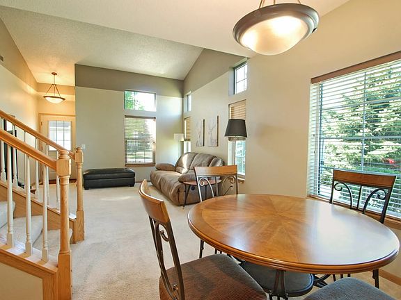 Beautiful and light filled end-unit townhome in Class A neighborhood. Home features vaulted ceiling and extra windows for plenty of natural light. Big corner lot with side yard. 2-car attached garage. Central heating and AC. Laundry on top floor with the 2 bedrooms.