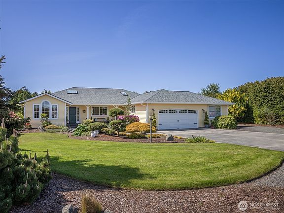 Beautiful home on an incredible 1.4 acre parcel within walking distance to Voice of America Park and the Dungeness Spit. The carefully curated yard looks like an arboretum with gorgeous ornamental trees, flowers and neatly kept pathways and patio spaces. The home has been meticulously cared for with all major systems updated since it was built - roof, furnace & heat pump and H2O heater. Great room with proud columns, propane fireplace & picture windows looking out to the lush backyard. Two BR suites plus a 3rd BR that was most recently used as a dining room. Home is supported by a 3 BR septic. Handsome library/office off of the great room. Oversized garage plus a separate shop building for hobbies or storage. Pride of ownership is evident.