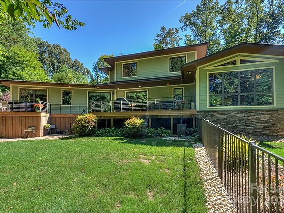 A mix of Modern and Frank Lloyd Wright-style home with amazing custom features EVERYWHERE! From the 1.88 acre wooded lot, you will enjoy PRIVACY all around you. Enter the home's entrance with stone pillars, flagstone flooring, and an 8' solid mahogany doors into the home with custom millwork/carpentry/flooring throughout. Kitchen features custom cabinetry (some w/ pull up cabinet faces), SS high-end appliances, gas cooktop w/ modern hood, Silestone countertops, and kitchen island w/ pull up bar stool seating. The open floor plan makes entertaining a dream-from the beams in the Vaulted Kitchen and Living room (w/modern-style vented gas fireplace), to the large Dining area w/ huge windows overlooking the private backyard, or the attached Sunroom with large windows and side door leading to the back upper deck that spans the length of the home. The Primary Suite is on the main level w/ beautiful glass doors overlooking the pristine backyard and an ensuite bath with rectangular tile flooring, walk in shower, garden tub, separate water closet, and walk in closet w/ custom shelving. Also on the main level is another suite that makes for a great office/Room with a private den, full bath, and mini kitchenette. The stairs have a modern iron banister that leads to two bedrooms, a full bath, and a loft- perfect for extra office space. The 3 car garage has additional storage areas and also room for a workmans area. The crawl space is encapsulated and also holds the whole house water filtration, UV, & reverse osmosis drinking/ice maker equipment. OTHER AMAZING FEATURES: ERV fresh air return Heat Exchanger, 50 year metal roof, Anderson 400 series windows, and 2x6 exterior walls with icynene spray foam insulation, and 3' overhangs on the home that keep water away from the home, 3 system zoned heat pump HVAC makes for low monthly electrical costs, Hot water heater recycler, 5" white oak flooring throughout the house, Heated floors in the Primary bathroom, and upper deck is Wolf brand (pvc core & surface), and Storage cabinets throughout house-all custom cherry with PureBond Birch interiors-no formaldehyde. The private and partially fenced backyard is great for keeping a manicured area and side yard areas are great for entertaining or enjoying a stroll through the woods to the neighborhood trail. Garden storage areas are under the upper decking. EVEN MORE...Sellers own the lot next to this property and would consider selling. Talk to listing agent about details.