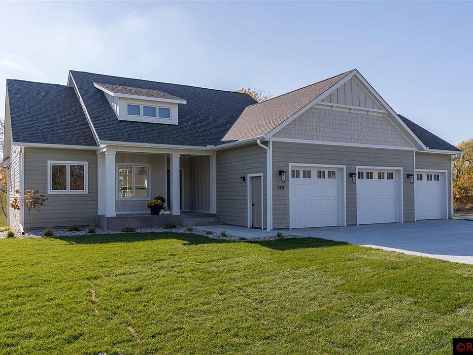 Embark on a journey of serene living! Step into a world of tranquility where architectural brilliance and nature's embrace blend seamlessly. Discover the art of impeccable craftsmanship in this 3 BR, 2 BA walkout ranch style home. Unwind by the fireplace, allowing its warm glow to blanket you in cozy bliss. Indulge in the joy of open-concept living, where every room seamlessly flows into the next, fostering a vibrant, harmonious atmosphere. Experience the joy of culinary creativity in the gourmet kitchen, complete with a sleek island and stunning quartz countertops. From meal prep to entertaining guests, this inviting space is poised to become the heart of your home. Retreat to the unparalleled comfort of the primary bedroom, a haven of relaxation and rejuvenation. Its serene ambiance invites you to recharge, offering an oasis of calm amidst the chaos of everyday life. Seller to include a finished walkout lower level: 9' ceilings, two additional bedrooms, bathroom and family room. Outside, a meticulously planned landscape awaits. Lounge near the fire-pit and enjoy soothing sounds of the creek. Oversized triple attached garage is plenty of space for all of your storage needs. This is the place where memories are made.