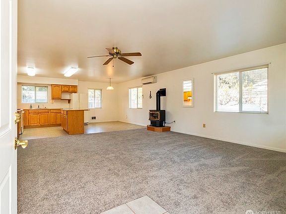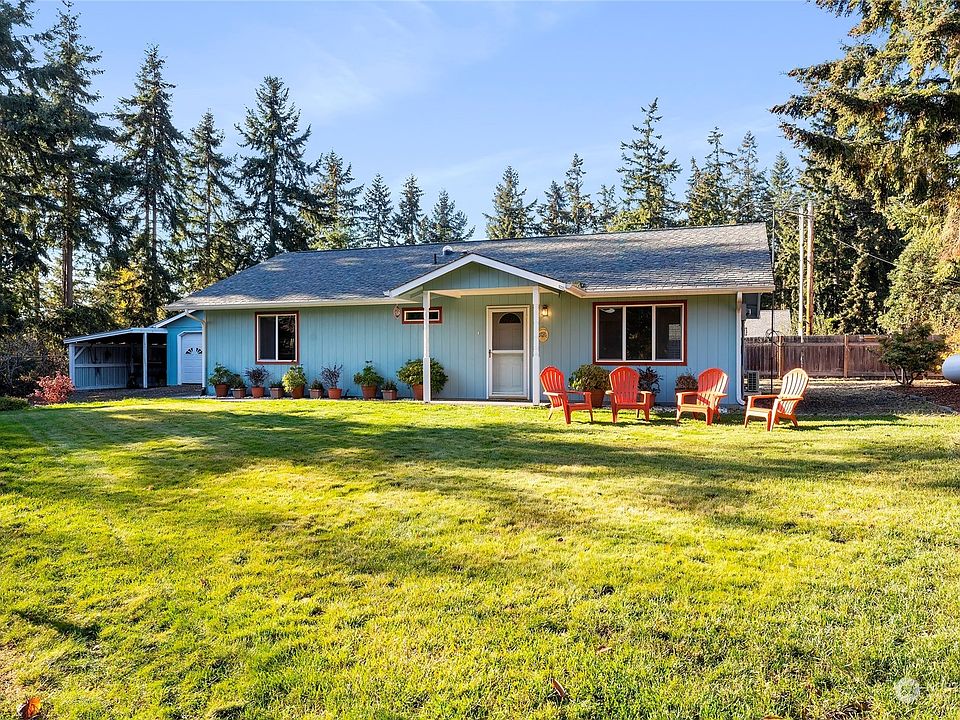 Located on two lots at the end of a quiet street is this well maintained and private one level home. Fully fenced with established fruit trees and garden space with ample room to store all of your tools and toys in the detached two bay garage or 10x12 shed with power. New carpets and fresh paint throughout makes this move in ready for you, with all appliances included. Large rooms and much storage throughout plus bath off primary bedroom and walk in closet. HP Mini split with A/C, propane stove, solar tube in primary bath and sunny kitchen. Close to primary school, county library and shopping. You will love coming home to this private .38 Acre property. Come tour this fantastic opportunity today!