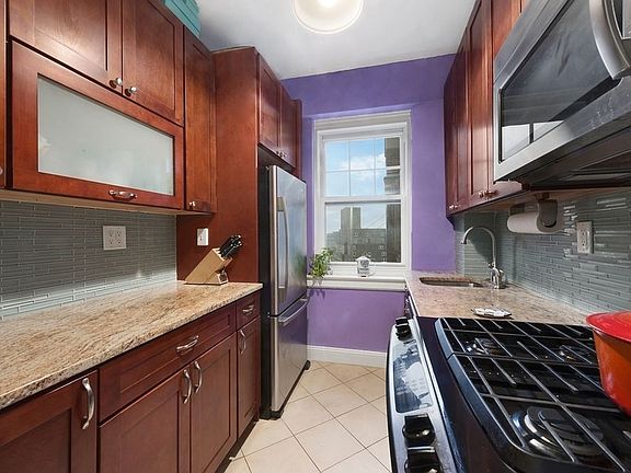 Rare unit on a high-level floor in desirable Castle Village apartment complex -- priced to sell! With Western, Southern and Southwestern exposures, its flooded with sun and spaciousness. As you step into the large entry foyer, which can be used as a dining area, you find yourself in a sunken living room with windows facing the George Washington Bridge, the Hudson River and beautiful sunsets. The fully renovated, windowed kitchen, with granite counter tops and stainless steel appliances, also offers similar views. A fully renovated bathroom is adjacent to an ample dressing room, which leads to a generous bedroom with Southern sun exposure. The newly installed windows throughout have upgraded mutins that are soundproof and energy efficient. This rarely available #3 line unit is in move-in condition, with new ceiling fixtures in every room, and has retained its original Art Deco Bakelite doorknobs. Come see it to believe it! CO-OP FEATURES: set on 7.5 acres of manicured grounds, including a community garden and shared herb gardens, Castle Village has doormen / 24-hour security / exercise room with Hudson River views/laundry room in each building / indoor & outdoor play spaces / on-site garage / storage (currently a waitlist) / community room / roof decks / energy savings programs should reduce energy budget by a third / pets permitted (one dog per household)/ 80% maximum financing. NEIGHBORHOOD: CASTLE VILLAGE is in the Hudson Heights area between West 181st St. and West 187th St., part of a bustling neighborhood with a good selection of restaurants, bars, banks and other neighborhood services. The commercial West 181 St. offers a variety of stores, eateries, and bars, as well as a Starbucks and a Pilates studio. Along the nearby Henry Hudson Parkway are tennis courts on the banks of the Hudson River and a great, scenic bike path along the river leading all the way downtown. West 187th St is like stepping into a slice of small-town America, with its various stores, restaurants and bars dotting both sides of the street as it gently slopes down to Fort Washington Ave from Cabrini Blvd. A short walk farther north brings you to Fort Tryon Park, with its verdant gardens, the New Leaf Cafe and the Cloisters museum. The "A" express train on W 181 St. and W 190 St. delivers you to 42nd St.in about 20 minutes at rush hour; local (M4) and express (M98) bus service runs along Fort Washington Avenue and Broadway. Entrances to the Henry Hudson Parkway, George Washington Bridge and Cross-Bronx Expressway are just minutes away.