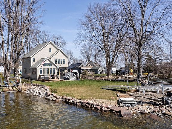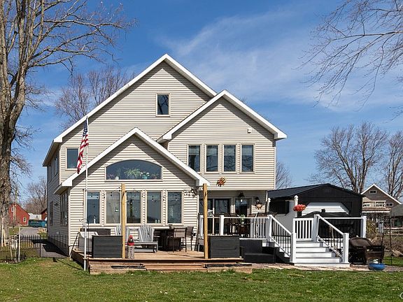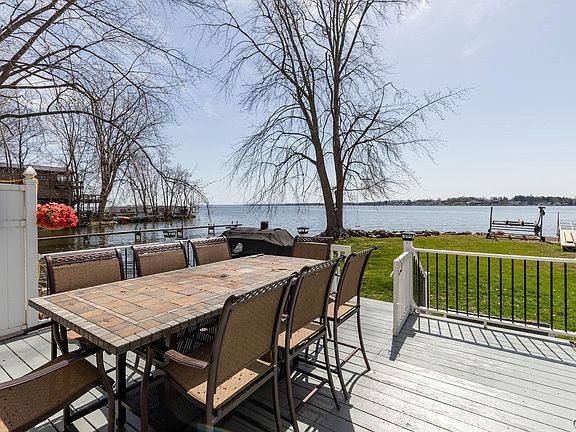 AMAZING WATERFRONT HOME! Completely rebuilt 1998. Many upgrades since. 3 bedroom 2 full bath home overlooking beautiful Oneida Lake. Large entryway w/nice coat closet. Open floor plan. Windows & french doors galore! So much natural light & a constant view of the lake. Large kitchen w/2 islands & granite counter tops. Loads of cabinets/counter space! 1st floor full bath & first floor laundry. Sunroom/dining room, or just a lovely space to relax. Large open living room w/gas fireplace for cozy night & nice ambiance. Upstairs with great size primary suite overlooking the lake with walk in closet and beautiful electric fireplace. Two more nice size bedrooms as well as another full bath. Full walk-up attic for great storage or more living space. 2.5 stall garage with shop room as well as a cute and cozy cottage room with electric fireplace & more lake views. So convenient for guests. Home has great inside space, with amazing outdoor space as well! Fully fenced yard, decks, dock and boat lift (both stay). New furnace & central air 2020, roof 2019,new appliances in 2021. New flooring 2023. Current flood insurance $670/yr. SELLERS ARE ASKING FOR ALL OFFERS BY NOON ON MONDAY APRIL 15, 2024