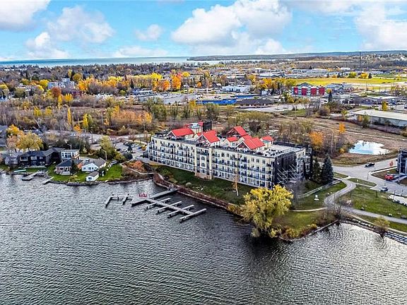 2,208 SQ FT PENTHOUSE WITH MASSIVE ROOFTOP TERRACE, PRIVATE BALCONY, 2 PARKING SPOTS, LAKE VIEWS & RARE PRIVATE DOCK SLIP! Here’s your chance to own the crown jewel of Elgin Bay Club, a highly sought-after waterfront penthouse with over 2,200 sq ft of light-filled living space and jaw-dropping views of Lake Couchiching. This bright corner unit features an expansive private rooftop terrace with panoramic views of the lake and Orillia skyline, plus a balcony with a glass sliding walkout overlooking the marina, waterfront park, and downtown. Minutes to shops, dining, trails, parks, beaches, and a marina, this prime location is all about lifestyle. The kitchen offers white cabinets with some glass inserts, granite counters, a bold black/white tile backsplash, an updated built-in oven and cooktop, a large pantry and a breakfast nook. The expansive living and dining areas are anchored by a gas fireplace and feature dual furnace systems with separate heat controls. The generous primary bedroom includes a sitting area, a walk-in closet and a 4-piece ensuite with a glass shower, jacuzzi tub and massive vanity. A 4-piece main bath serves the second bedroom. Bonus second-level loft with a walkout offers added living space and flexible use. Newer vinyl flooring is featured throughout most areas, with in-suite laundry and ample storage adding everyday convenience. Two owned parking spaces, one underground and one outdoor, an exclusive storage locker, make daily living easy. Residents enjoy amenities including a party/meeting room, rooftop deck, community BBQ and visitor parking. Enjoy exclusive ownership of one of Elgin Bay Club’s rare private dock slips, as one of the few residences with this privilege, so you can pull up on your boat, store your kayak, and savour waterfront living! Fees include water, parking, building insurance and common elements. Opportunities like this are few and far between - make this rare waterfront penthouse your #HomeToStay before someone else does!