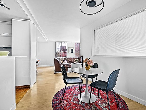 A gracious foyer leads to an open living-dining room with a well-designed electric fireplace. Quintessential West Village views abound in every direction – a glimpse of the Hudson River to the west, open skyline to the north, and a charming view of townhomes to the east. Off the living room is a private balcony with views of lush greenery, providing a serene and quiet environment.
