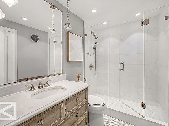 Step into a one-of-a-kind marble chef's kitchen, a culinary dream equipped with high-end stainless steel appliances and custom contemporary cabinetry that exudes sophistication. You'll be captivated by the generous closet space, an abundance of natural light and open views through the windows, and the convenience of a washer dryer located in the building. The primary bedroom is a serene retreat, designed to accommodate an oversized king bed, and is accompanied by a recently renovated spa-level bathroom. Here, indulge in a glass shower adorned with exquisite crème Marseille tiles and chic nickel hardware. Plus, the large closet ensures all your storage needs are effortlessly met.