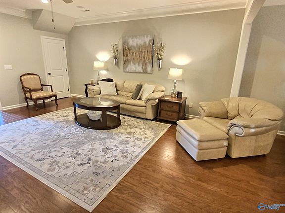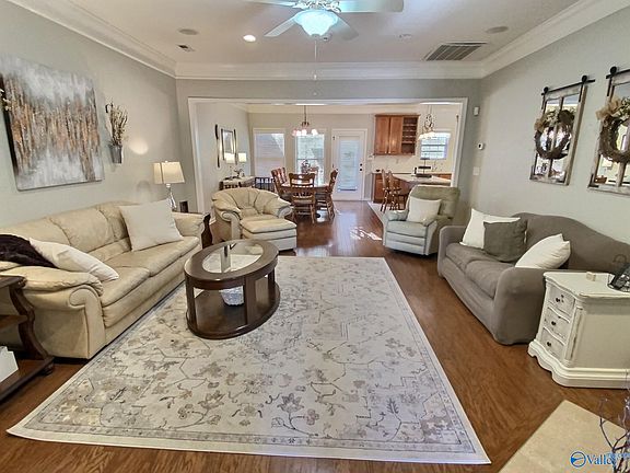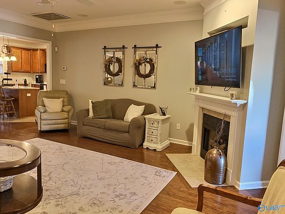 Beautiful townhome located near Toyota Field & Town Madison, easy access to I565 & Redstone Arsenal. Enjoy easy living with no lawn maintenance and access to amenities such as pool, clubhouse, tennis, gym, trails & fish at community pond (catch and release). Interior features 8" crown molding, granite countertops, custom cabinets, kitchen island, open floor plan with gas fireplace, downstairs master bedroom & ensuite bath, plus half bath for guests. Upstairs includes a loft for entertainment or office with two extra bedrooms and bath. This home exterior has a private patio, a 2 car garage PLUS additional land 16'x36' exclusive private paved parking area! So much to Offer!!!