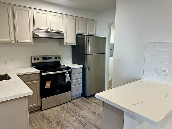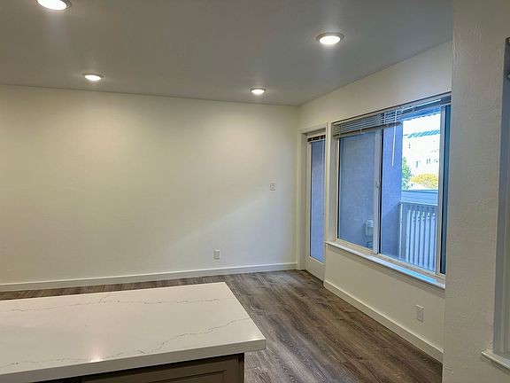 Spacious 1 bedroom apartment with updated kitchen and bathroom. Nice open layout with renovated kitchen featuring quartz countertops and stainless steel appliances including dishwasher, and breakfast bar. Luxury vinyl flooring throughout. Bedroom has little nook that can be used as an office area. Deck accessed from both the living room and bedroom.
