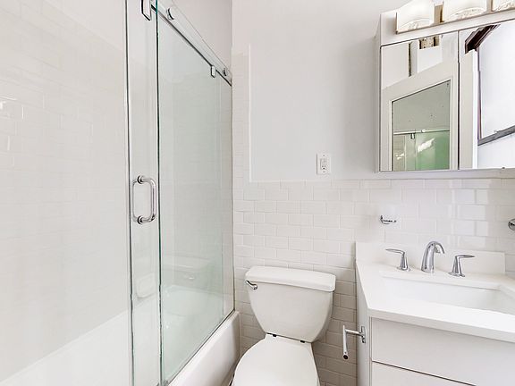 The bathroom has been stylishly updated with clean finishes and a glass-enclosed tub/shower combo. Hardwood floors run throughout, and there's a gracious entry hallway that adds a nice touch of separation and makes the place feel more like a true home.