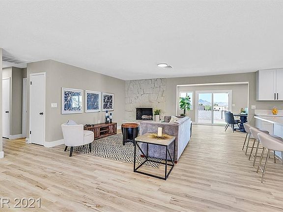 NEWLY COMPLETELY REMODELED single story home, circular driveway, RV parking and gate, huge lot with mountain and partial strip view, serene pool that is sunken down below the home. This home has brand open layout, new appliances, new flooring, paint, bathroom update. The bedrooms are good sized rooms with plenty of space. This home boasts a huge family room just off the kitchen with a wood burning fireplace. Brand new windows throughout the home. The backyard is private with a newly painted pool that is oasis like. NO HOA!