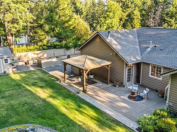 Tucked into Lakeland Village, this RAMBLER is a peaceful retreat. Expanded with a 520 sf custom library & rec room, it offers multiple spaces for quiet moments & lively gatherings. Inside, vaulted ceilings, wood-wrapped windows, & stone fireplace bring warmth & charm, while the kitchen & dining areas flow easily for everyday living. Out back is simply magical. A sparkling pond & waterfall, patios for relaxing or dining, & a gazebo create a private haven, all against 100 acres of forested greenbelt as the backdrop. Raised garden beds, shed, & gated RV/boat parking add practicality to beauty. With an extensive list of upgrades, every detail is dialed —inviting, thoughtful, & full of character. Lakeland Village is WHERE it's at! Welcome!