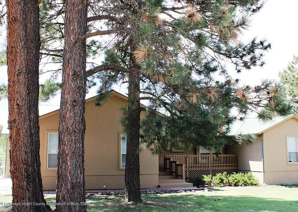 All one level Alto Village home, with Sierra Blanca view and mountain views. Separated bedrooms with owner suite on one end and guest rooms on the other. Two car garage, oil and chip driveway, stucco exterior, and metal roof. Nicely remodeled with territorial flare. This home has an open feel. Furnished with exceptions and personal items. Cathedral ceilings in almost all rooms. Owner suite bath has whirlpool tub, plus separate shower and access from the bedroom to the deck. Deck is covered and uncovered and large. Ample parking for guests. RO water at kitchen sink plus house water softener.