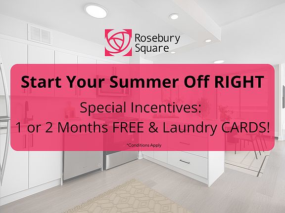 Start Your Summer Right with a New Home!Sign Today & Get 1 Month FREE + $200 Laundry Card or Get 2 Months FREE on a 14 Month Lease - Select Units Only!Welcome to **Rosebury Square where your dream of urban living becomes a reality. Our luxurious, spacious apartments are thoughtfully designed to provide you with a sanctuary in the bustling heart of the city.Enjoy the perfect blend of convenience and lifestyle with just a 9-minute walk to Eglinton West and Glencairn subway stations and the LRT, along with a quick 13-minute drive to Yorkdale Mall. With an on-site Sobeys, pharmacy, and daycare, everything you need is right outside your door.Indulge in premium amenities, including expansive balconies that invite the outdoors in, secure underground parking with fob access, and open-concept floor plans that inspire both relaxation and entertaining.At Rosebury Square, you're not just finding a place to live; you're discovering a vibrant community that enriches your life. Experience the essence of elevated living today!