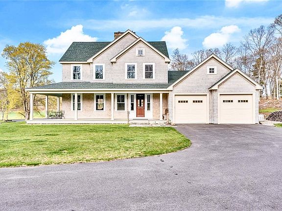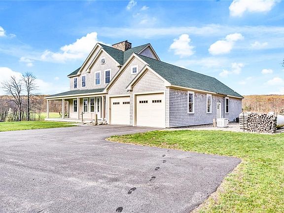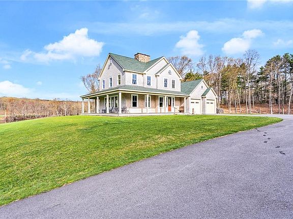 Step onto a property that is the quintessence of rural New England. This idyllic Rhode Island property features swirls of old colonial life paired with contemporary farm living. Nestled neatly in the woods, completely enclosed by trees and hidden from the outside world, this 134 acre property shines in all four seasons with cascading rivers, century old trees pregnant with leaves, animated wildlife, acres of aromatic peonies and mellifluous sounds of birds greeting you and inviting you to their home. Enjoy miles of cleared hiking paths that snake through the woods, affording you views of the rolling vast expanse visible throughout. The oceans of grass blows and ripples in the wind during the spring and summer symbolizing the life and power this property possesses. The saturated bright leaves in the fall hint at the coming cold months and the exciting new beauty that brings. Miles of original stone walls define the property and two spacious barns provide shelter for animals and machines. A tranquil pond, Blue Herons, deer, ducks, swans, pear trees, blueberry and raspberry bushes, grape arbors, all here for the feasting. Perched atop a hill overlooking the landscape is a new 3680 sf. custom quality built home featuring 4 bedrooms, 3 1/2 baths, 9' ceilings, plush movie theatre in the lower level, spectacular views from every window. Hardwood floors throughout with state-of-the-art HVAC system. Barns are ready for your animals, hobbies or collections. Truly a must see property.