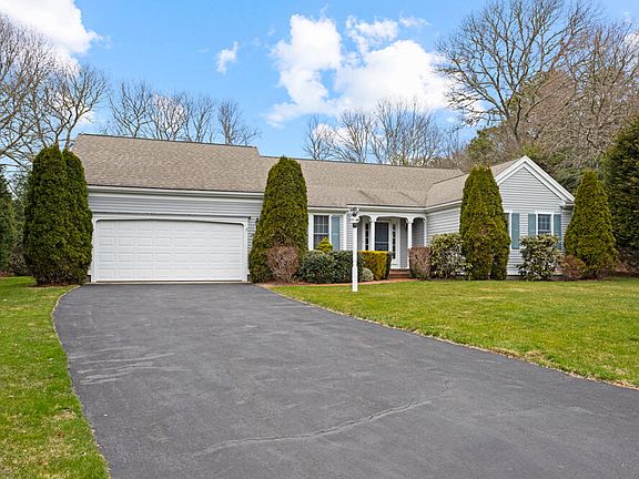 Custom built pristine Florida style ranch in a private setting, south of route 28. Tucked away at the end of a cul-de-sac abutting 147 acres of a Wildlife Reserve. Highly sought-after open floor plan with vaulted ceiling, hardwood floors, and central A/C may check all your boxes. With two transitional type rooms that could be perfect for home office, den or overflow guests. The Main ensuite bedroom has two large walk-in closests and bath with whirlpool bath and separate shower.The kitchen is bright and overlooks the dining area and great room, then step off onto the large backyard deck and beautifully manicured lawn with irrigation. You're minutes away to the center of Osterville village and beautiful Dowses Beach.Turn-key and waiting for you to start enjoying your home-away or everyday!