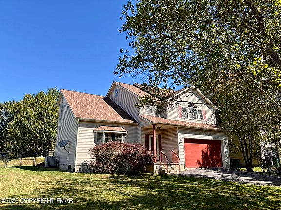 Welcome to 140 Fergus Way! This home has it all and then some! Almost 3,000 sq feet of finished living space. 3 large bedrooms, 2.5 baths, finished attic, bar/sunroom/den, recreational room, office, 2-story foyer, 2 gas fireplaces, multiple walk-in closets, and a chef's delight of a kitchen! Primary bedroom has a jetted tub, 2 walk-ins and standing shower. Outside is ready for your next picnic with a fenced-in yard, firepit, paver patio and rear deck. House has A/C, heat pump and BRAND NEW ROOF! Located in lovely Pocono Farms East with dues of $155/yr and total property taxes of $4,798/yr this is a must-see!