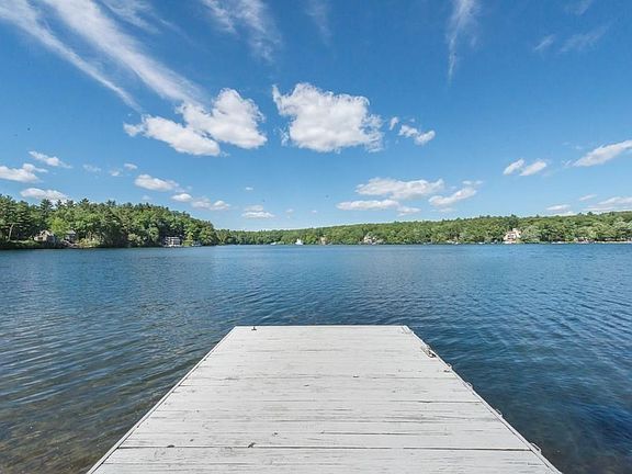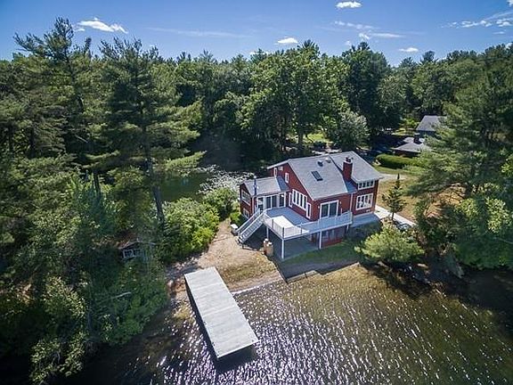 Surrounded by Crystal Clear Spectacle Pond with 870 feet of water frontage this Spacious Home has an open flowing floor plan. "The lake is a 66 acre two-story pond with crystal clear waters and transparency to 19 feet". This beautiful pond has unusually large lots for the homes surrounding it with lots of trees dotting the shore line. A quite pond with Heron and Loons frequenting the shores. Kayaks & paddle boards paddle peacefully mornings & water skiing & tubing is often an afternoon activity. This is a private lake with no public boat access which is why our lake stays so clean and free of weeds! The living room has a soaring cathedral ceiling, fire place, wood floors, lots of windows and sliding glass doors to the deck all with Spectacular views. The lower level is finished with an enormous family room with a fireplace, wet bar, full bath and walks out to the Beach! Did I mention the I-Beam dock and the sandy beach or the yard on the Peninsula w/ fireplace