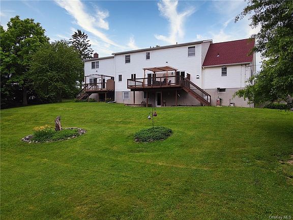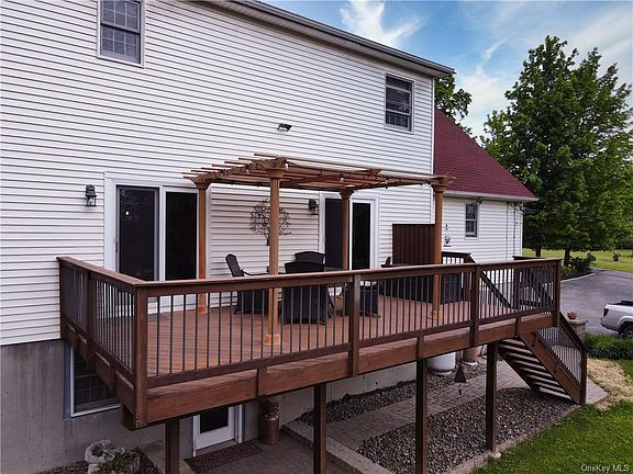 Custom built 2 family (mother / daughter) cape cod home located in the Town of Newburgh. Updates 2007-new driveway, hardwood floors in family room, tiled kitchen floor..2008 kitchen appliances, granite countertop, replaced exterior and garage doors...gas fireplace in family room.. 2010 new front walkway...2011 replaced decks...2012 new shed and new walkway and retaining wall..2013 updated both bathrooms (main house)...2018 new roof...2022 new furnace..2022 new retaining wall and stairs. All the work has been done. Move in ready. Built for the large extended family. Accepted offer. Continue to show.