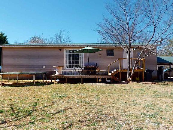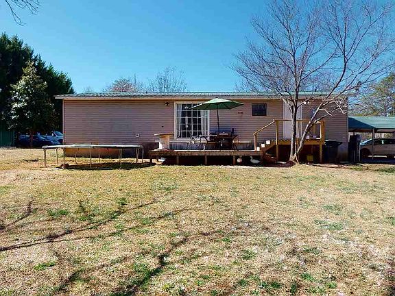 Level two and a half acres of land with creek in the rear! Home is bricked underpinned, ready for FHA, VA or Conventional financing. Open floor plan with split bedrooms. Master to the left features: large master bedroom room with walk in closet. Private master suite with soaker tub/shower combo. Secondary bedroom both have walk in closets. Full bath with tub/shower combo. Great-room is open to dining room, kitchen and breakfast area. Laundry room off kitchen. Deck on the rear of the home. Storage building will convey with sale. Home is in need of updates. Priced accordingly. Home is being sold "AS IS". Metal roof 2009.