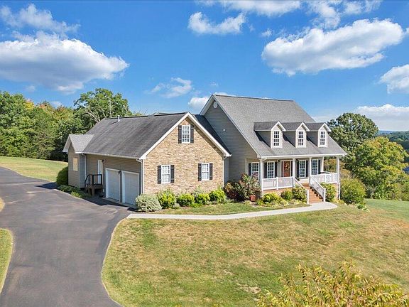 Discover the charm of this exquisite custom-built home, nestled on a picturesque 12.5-acre country setting. Enjoy breathtaking mountain views and the tranquility of rural living while remaining conveniently close to Roanoke and Rocky Mount. Step inside to find a spacious kitchen featuring a convenient bar and nook, complemented by elegant hardwood floors and soaring high ceilings. The formal dining room provides a perfect space for gatherings, while the expansive main level master suite offers a luxurious retreat. The main level also includes a well-appointed laundry/mud room for added convenience. Upstairs, a finished bonus room serves as a versatile office or additional living space. The lower level is thoughtfully finished with a rec/game room, wet bar, full bath, and workshop- ideal for entertaining and hobbies. Ample storage throughout the home ensures everything has its place. This home also offers the ease and elegance of composite decking, beautifully installed on both the front and rear of the home. This durable, long-lasting material is a stylish and practical solution for outdoor living spaces that require minimal upkeep. The impressive three-bay detached garage is a true standout feature, offering ample space for vehicles, storage, or a workshop. Equipped with water for convenient indoor car washing and a garage door designed to accommodate larger vehicles, such as campers, this versatile space is perfect for enthusiasts and homeowners seeking both functionality and flexibility. Owner/Broker.