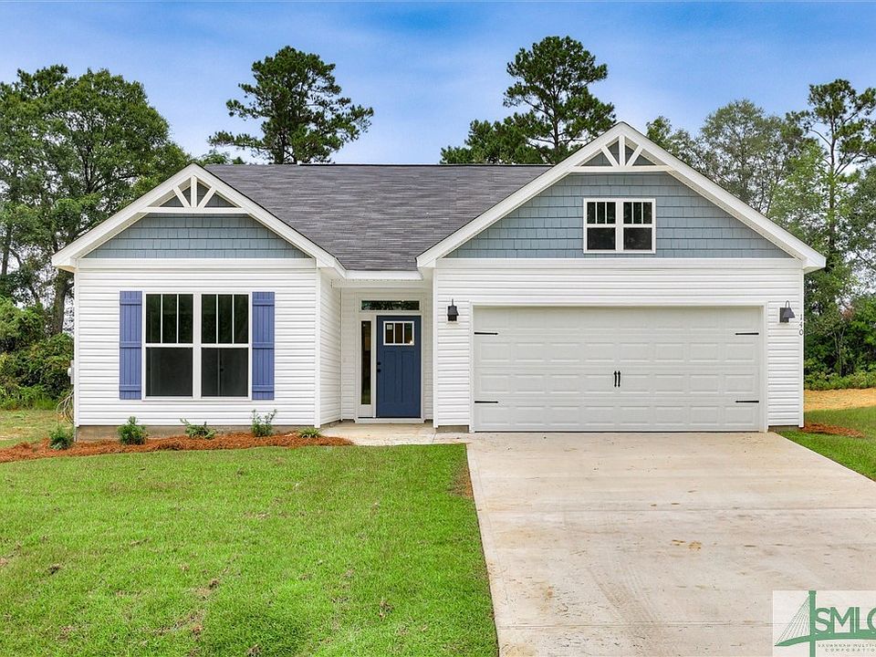 Move-in Ready! Welcome to the popular Bridgeport Plan by Keystone Homes. A charming 4 Bedroom, 2 Bath, 1,672 sq ft ranch-style home sitting on a 0.52-acre lot. This open-concept design features a spacious family room, breakfast area, and a large kitchen with white custom cabinets, granite countertops, Whirlpool stainless-steel appliances, a huge island, and a corner walk-in pantry. Split floor plan with a roomy owner’s suite featuring a walk-in closet and a luxurious bath with dual vanities, granite countertops, a tiled garden tub, and separate shower. LVT flooring flows throughout all main areas, with carpet in the all bedrooms. Enjoy outdoor living on the oversized rear patio! Sod, irrigation, and landscaping already in place. $18,000 in Buyer Incentives offered! Easy access to I-16 and local shopping. Craftsman-style charm, modern finishes, and a builder’s warranty for peace of mind, this one won’t last!