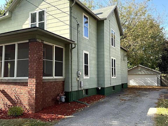 Welcome to this spacious 4+ bed, 2.5 bath home filled with many charming details and enough space for everyone & everything! You will be greeted by the enclosed front porch waiting for you to sit and enjoy the changing fall colors. Enter into the elegant formal dining room highlighted by rich crown molding, bold bullseye corner blocks, and a large bay window while the adjacent inviting living room boasts classic French doors and a grand picture window with beveled glass. A main floor bedroom with functional pocket doors could also serve as a home office or an extension of the dining room when hosting larger gatherings. Moving into the sizable kitchen, you will find abundant cabinetry, plenty of room for casual meals or morning coffee, some new appliances (2025), and a nearby full bathroom. The upstairs delivers many versatile living areas where the extra rooms could be utilized as nonconforming bedrooms if you wish. You will love the primary bedroom featuring a bonus nook perfect for a walk-in closet, sitting area, or nursery, another bedroom with a unique built-in, a family room ideal for hanging out, and a fourth bedroom/laundry room conveniently placed on the second floor. Another full bathroom completes this level. Outdoors, the shaded backyard offers a patio area, potential koi pond, side porch, and an impressive 2-car detached garage showcasing lofted storage and additional finished rooms ready for a workshop, hobby space, or office. Make your appointment today!