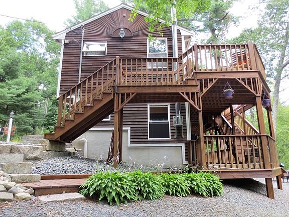 Privacy But No Secrecy - It’s For Sale! A Split-Level Ranch Boasting Two Very Large Multi-Level Bedrooms On 3.59 Acres of Timbered Land. Privately Nestled Home with Distinctive Features, Right-Angled Kitchen Layout Opens to Dining Area, Lower Level Living Room with Wood Burning Stove. Kick-Back, Relax or Host a Bash on the Two Huge Welcoming Multi-Level Rear Decks Overlooking Natures Best. Located Adjacent to Town Amenities and Minutes to Rt. 24 & 44. This Convenient and Favorable Style of Living Brings Nature's Retreat to Your Doorstep! (home pictured from summer)