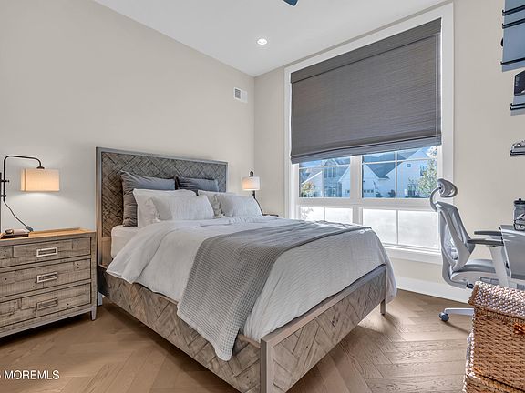 Toll Bros desirable Regency at Allaire offers this 4 bedroom 3 full bath 2 story home w/ open floor plan on a private lot. Custom design and taste, the upgrades on this gem will not disappoint. Guests are greeted in the 2 story foyer, and enter along the herringbone pattern wood floors that expand throughout the lower level. First level also includes 2 large bedrooms including a primary suite with 10ft tray ceilings, tiled bath with double sinks, and walk in closets, home office with built in Murphy bed and storage, laundry room, 2 story family room with coffered ceilings, gas fireplace, with shiplap that expands 20ft. Gourmet eat-in kitchen has center island with breakfast bar and farm sink, custom shaker cabinets with display, Jenn air appliances, and brass fixtures. 2nd level has loft area overlooking family room, 2 large bedrooms, full tiled baths, and walk up attic over garage that is currently used as a gym. Exterior features covered patio with pavers that expand the length of the home, and gas fire pit.