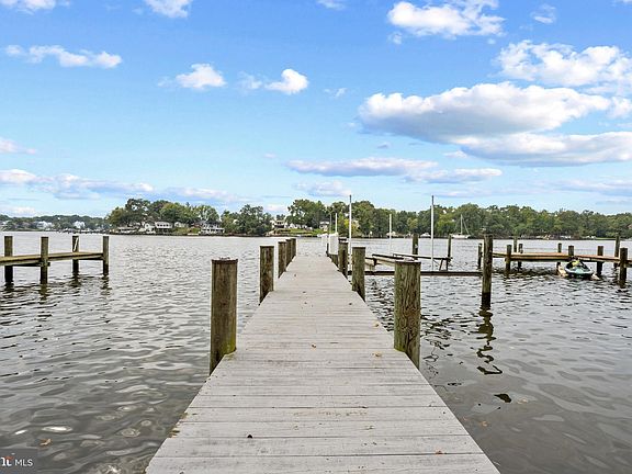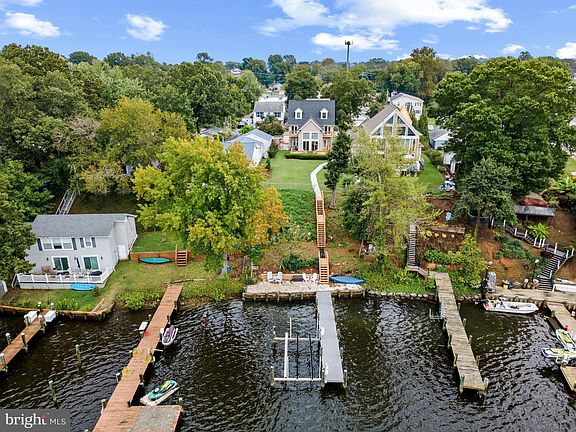 Experience the very best of waterfront living at this beautifully renovated home offering 7’ MLW, a private pier, and a sandy beach. The pier is fully equipped with electricity and water and includes a Magnum 8,000 lb. electric boat lift installed in 2021—ideal for effortless boating and waterfront enjoyment. This residence spans three levels of thoughtfully designed living space. The main level boasts an open-concept layout with gleaming hardwood floors and a gourmet kitchen at its heart. The oversized quartz island, seating for four, is complemented by custom white soft-close cabinetry, stainless steel appliances, and pull-out pantry shelving. The adjoining dining and family rooms flow seamlessly into a stunning sunroom, highlighted by cathedral ceilings, a pellet stove, and walls of windows framing sweeping water views. A powder room is conveniently located just off the garage entry. The second level features a serene primary suite with a private waterfront balcony, dual walk-in closets, and a luxurious spa-inspired bath complete with soaking tub, glass shower, double vanity, and water closet. Two additional bedrooms, including one with its own balcony and water views, share a spacious bath. A laundry room completes this level. Ascending to the third floor, you will find two additional bedrooms and a full bath with a tub/shower combination, offering versatile spaces ideal for a home office, fitness room, or media lounge. Outdoor living is equally impressive, with a fenced backyard, expansive deck, and a lighted walkway leading to the private beach and pier. A storage shed provides ample space for lawn and boating equipment. Comprehensively renovated in 2017, this home ensures peace of mind with updated appliances, HVAC, water heater, roof, deck, and pier. Enhanced with maintenance-free aluminum-wrapped exterior trim and updated lighting, this property combines timeless elegance with modern convenience. This is a rare opportunity to own a truly turnkey waterfront retreat designed for both relaxation and entertaining.