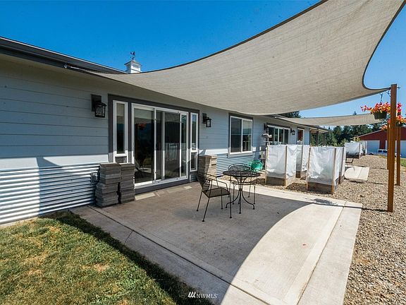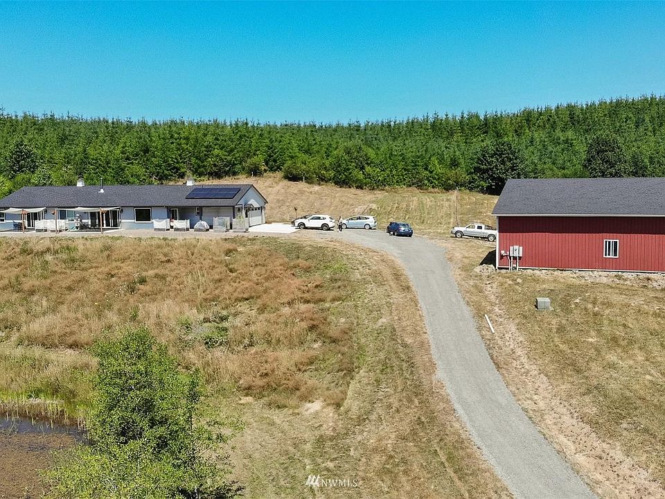Extraordinary well built 1 level, 3 bed, 3 bath home with a bonus music room/ office/ with acoustic windows and walls. This home includes beautiful cathedral wood ceilings, a fire suppression system, a masonry wood stove/furnace (that will heat the entire home with minimal wood burned) and a heat pump to spread the heat or cool the home. Gas stove and hot water tank, along with soft close cabinets and drawers. Large ADA doors and hallways will allow you to stay in this home for along time. Solar panels on the roof reduce the electric bill. Huge laundry/craft room and very spacious bedrooms. Huge 49 x 48 shop with a brand new roof and 3 - 14ft doors. There is also a 150 easement along the west line to prevent anyone from building close.