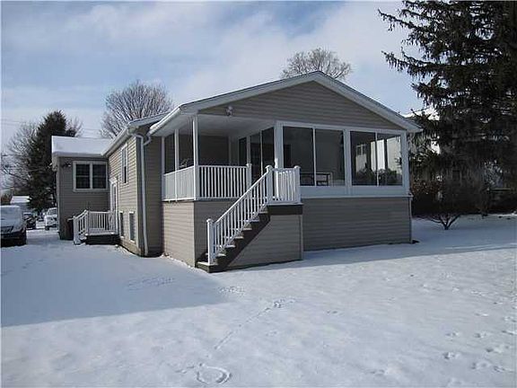 Move in Ready! 1900 sq. feet of living space on the upper level. The same size basement with 572 sq. feet of that finished. Many updates, replacement windows, hardwood floors, both baths, 1 just 2 years ago, solid surface counter in the kitchen, new hot water heater, rebuilt 3 seasons room, professionally landscaped. Nicely painted, walk in closet in master bedroom, vinyl sided, roof aprox. 10 years. Close to school, shopping, 390, Henrietta 17 mins. away. The driveway was partially dug out and new blacktop on all of it. Don't miss this one- immaculate.