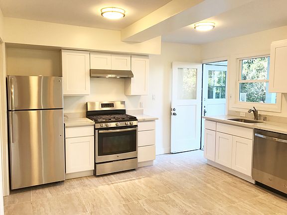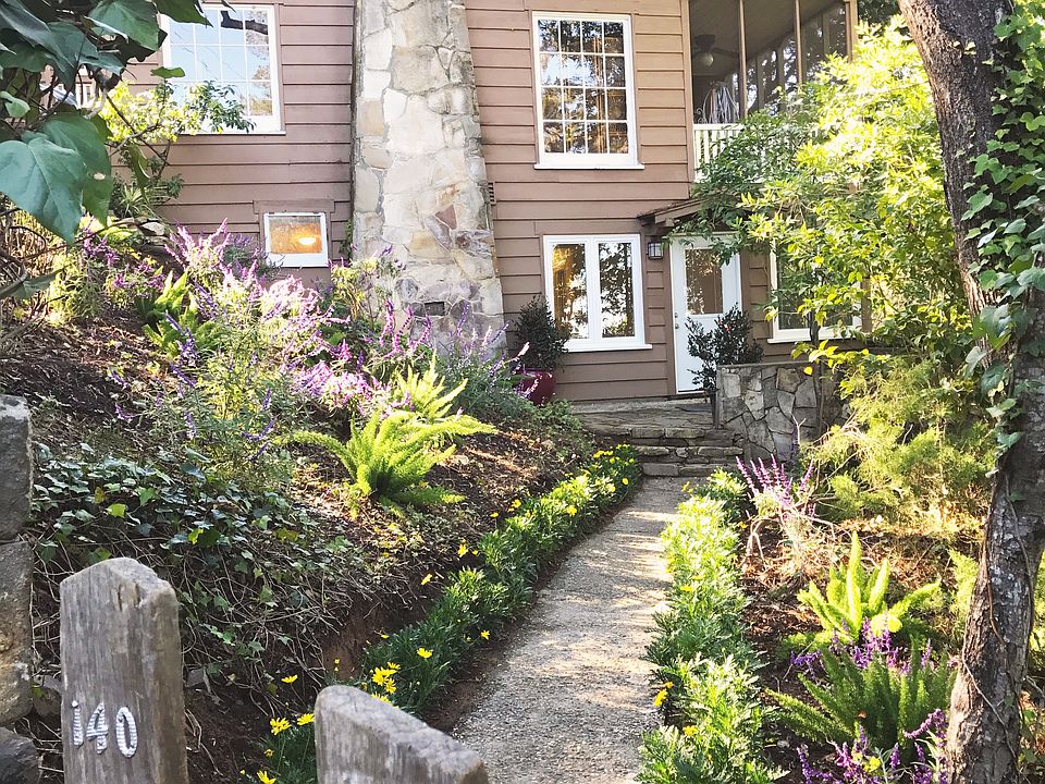 Gorgeous renovated large studio in Historic Hunting Lodge/Estate on 1/3 acre. Historic lodge estate has been converted into 3 wonderful apartments, and is located in a private park like setting in the enchanted and tranquil Christmas Tree Hill area, close to shops and numerous attractions of Corte Madera. Exquisite renovations include fully updated chef's kitchen, with white granite counters, new cabinets, and new stainless steel appliances. Off the kitchen is a handy laundry room with a new LG washing machine and dryer as well as a new furnace. Large double pane windows on three sides of the apartment provide lovely light and vistas of the private yard and garden. Plantation shutters have been provided for most of the windows. The living room has beautifully refinished oak floors, and the fireplace has been updated to Calif code standards and decorated with white marble. The classy bathroom updates include new tile, hi end fixtures, a marble sink vanity as well as a walk in shower. The entire apartment has been freshly painted, and so has the charming garden cottage. The apartment comes with plenty of storage space including two fabulous interior rooms for storage, and a very large walk in closet. Off the studio is a nook area, that may be used for a queen sized bed. The quaint cottage in the back yard may also be used for storage, or even office space. There is also storage available in the vintage garage located on Morningside, with car parking for 1 car directly in front. The apartment has a lovely garden at the entry, and its own private back yard with trees, flowers, and a beautiful park like feel. The tranquil dreamy location is coveted by hikers, bikers and nature lovers. Cats ok. A small quiet dog may be considered as well. Access is off the Hill Path stairway. Close to charming shops, cafes, walking paths and transportation. Easy drive to SF.