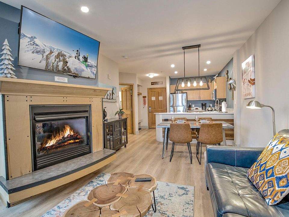 Modern finishesStylish lightingHeated poolSki slope viewsOutdoor hot tubsPrivate balconyBeautifully remodeled one-bedroom condo