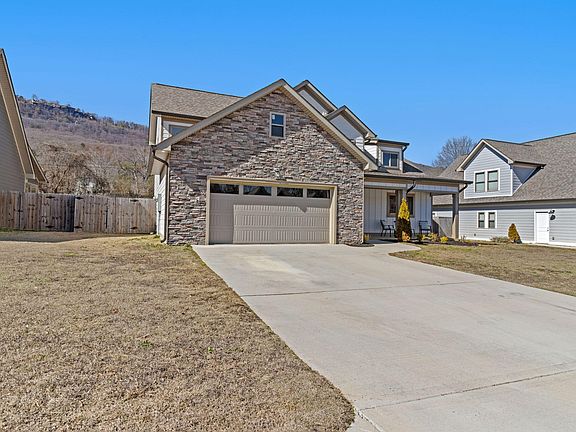 Just about 4.5 miles out of downtown Chattanooga, in scenic Flintstone, Georgia is this remarkable, one-owner home. Open and spacious is this unique layout. The grand French doors welcome you in from the wide covered front porch. A wall of windows in the great room offers soaring views of Lookout Mountain up to Rock City. The kitchen features a huge island with expansive countertops and stainless appliances so everyone can pitch in. A huge kitchen window overlooks the front yard. Beautiful engineered hardwood floors grace most of the main level including the spacious primary suite overlooking the backyard and mountain. The primary bath features a large tiled shower, double vanities with granite tops and walk-in closet. The laundry room is just steps away as well as the oversized two car garage. Upstairs you'll find three more bedrooms with lots of natural light and sharing a private bath. Out back, the yard is completely fenced and a fire pit has been added. Only design like it in the neighborhood. Make it your new home today!