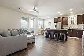 . Wood laminate flooring in the living room and kitchen and bedrooms have lush carpet floor.