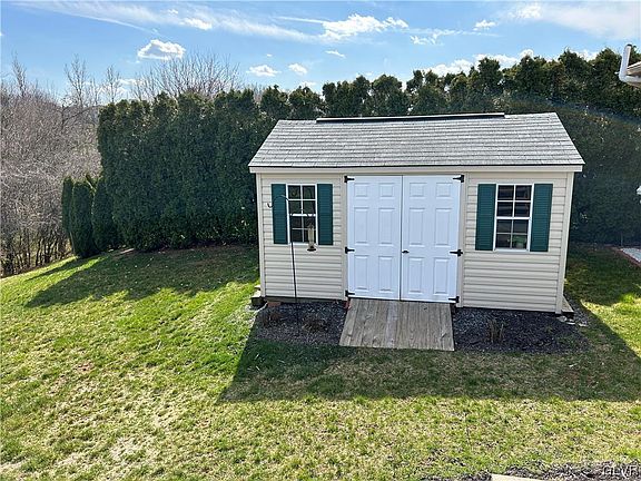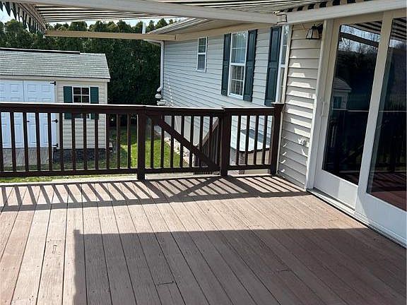 Well maintained ranch in Wolf's Run with 3 bedrooms & 2.5 baths. From foyer double glass French doors to living room with hardwood floors. Glass door from LR to dining room which opens up to family room and kitchen. Sliding door from DR to deck with retractable awning. Storage shed & wired outlet for hot tub. Kitchen has granite counter tops, double wall ovens, gas stove top, dish washer & refrigerator. Laundry room off kitchen with large pantry, toilet & utility tub. Master bedroom has w/w carpeting and master bath has shower stall & walk in closet. 2 car garage with 2 garage door openers and epoxy floor. Entrance to basement is through the garage. One finished room with w/w carpeting, electric heat & ceiling fan. Poured foundation. Radon system installed 2019.