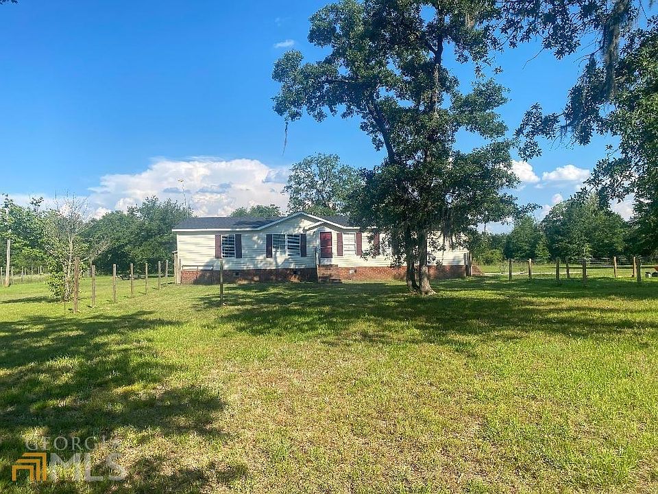 Looking for a little Farm in the Southeast Bulloch School District close to the Canoochee River? This 3 Bedroom 2 Bath Home is perfect for that! The home is on a permanent foundation with 5.01 acres of land ideal for horses, animals, and your on private vegetable garden. There is a large wire fenced area on the side of the property, a 20x25 storage building with an attached carport, an oversized concrete patio, and a side concrete parking pad with side door entry. The home has a large kitchen with lots of counter space, living room, dinning area, mud room, and a separate den with wood burning fireplace. All bedrooms have luxury vinyl plank flooring, ceramic tile in kitchen and living areas. Master bathroom has a custom tiled walk-in shower, double vanities with quartz counter top, and faux wood flooring. This home does have Covenants/restrictions which apply. This property is conveniently located near I-16 with easy access to Statesboro, Pooler, and Savannah.