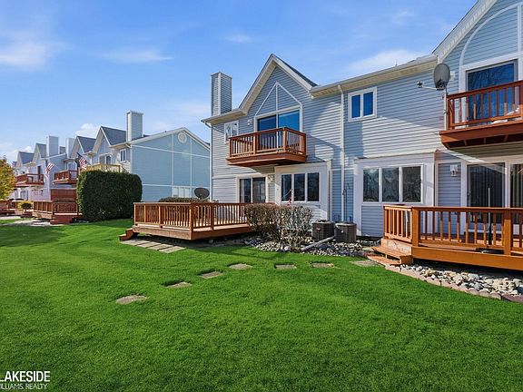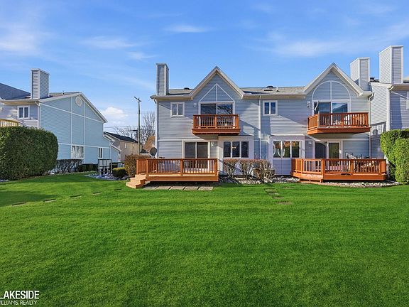 Waterfront end unit condo with tons of natural light in a well maintained community. 15x35 boat well/deck equipped with electricity & water are included! Gorgeous 2 bedroom, 2.5 bath waterfront condo offering stunning views from both the spacious private deck and the balcony off the master suite. The master ensuite features vaulted ceilings and a generous walk-in closet. Enjoy the open concept living area complete with a wet bar and cozy gas fireplace, perfect for relaxing or entertaining. Additional updates include two new Anderson door walls. Bonus two extra community parking spaces directly next door for added convenience. A beautiful waterfront lifestyle awaits! Quick boat ride out to the St Clair River.